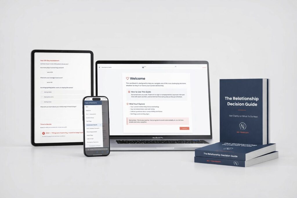 The Relationship Decision Guide gives you the clarity and tools you need — whether you’re trying to decide if you should stay, validating a decision you already made, or learning to recognize red flags before you get in too deep again.